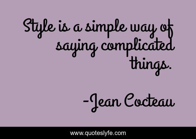This page presents the quote "Style is a simple way of saying complicated things.". Author of this quote is Jean Cocteau. This quote is about creation, creativity,.