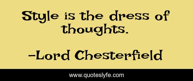"Lord Chesterfield Quotes." Quoteslyfe.com, 2025. Mon. 08 Dec. 2025. <https://www.quoteslyfe.com/quote/Style-is-the-dress-of-thoughts-276867>.