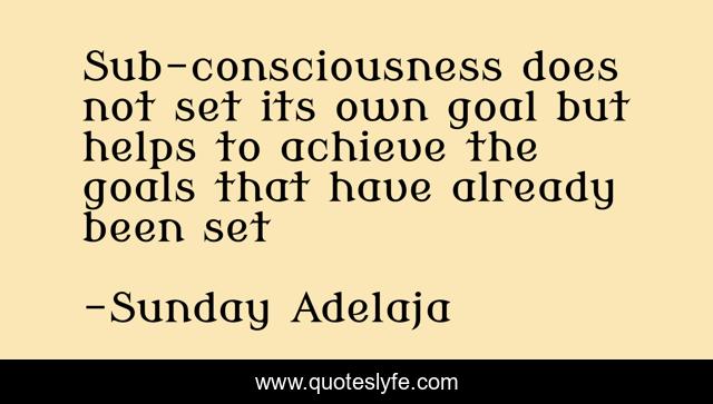 This page presents the quote "Sub-consciousness does not set its own goal but helps to achieve the goals that have already been set". Author of this quote is Sunday Adelaja. This quote is about calling, sub-consciousness, purpose, goal,.