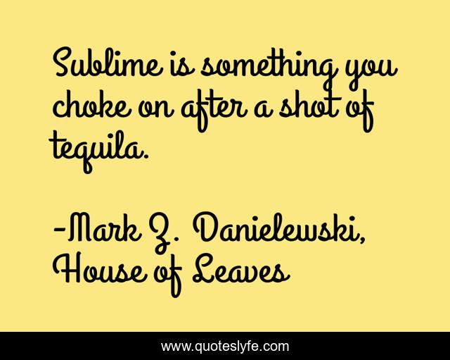 "Mark Z. Danielewski, House of Leaves Quotes." Quoteslyfe.com, 2025. Sun. 14 Dec. 2025. <https://www.quoteslyfe.com/quote/Sublime-is-something-you-choke-on-after-248791>.
