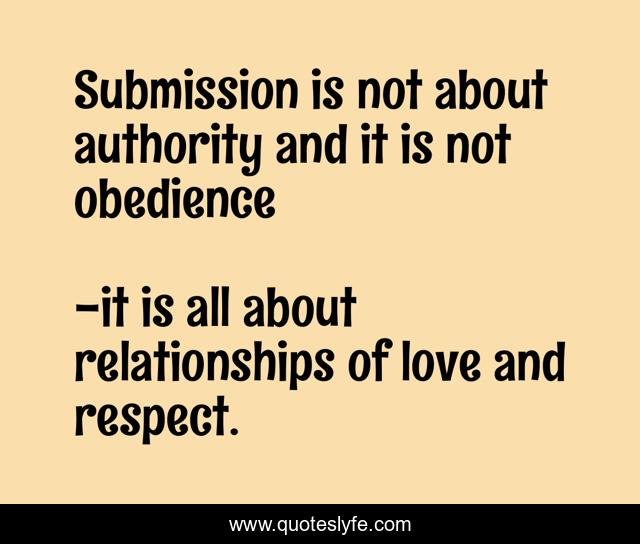 "it is all about relationships of love and respect. Quotes." Quoteslyfe.com, 2025. Fri. 05 Dec. 2025. <https://www.quoteslyfe.com/quote/Submission-is-not-about-authority-and-it-773>.