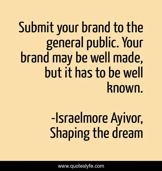 "Israelmore Ayivor, Shaping the dream Quotes." Quoteslyfe.com, 2025. Fri. 05 Dec. 2025. <https://www.quoteslyfe.com/quote/Submit-your-brand-to-the-general-public-129534>.