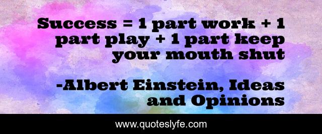 This page presents the quote "Success = 1 part work + 1 part play + 1 part keep your mouth shut". Author of this quote is Albert Einstein, Ideas and Opinions. .