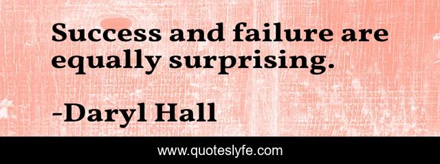 This page presents the quote "Success and failure are equally surprising.". Author of this quote is Daryl Hall. This quote is about equally, success, surprising,.