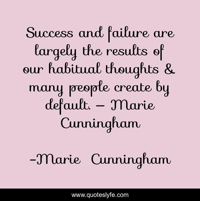 This page presents the quote "Success and failure are largely the results of our habitual thoughts & many people create by default. — Marie Cunningham". Author of this quote is Marie Cunningham. This quote is about self-awareness, wellbeing,.