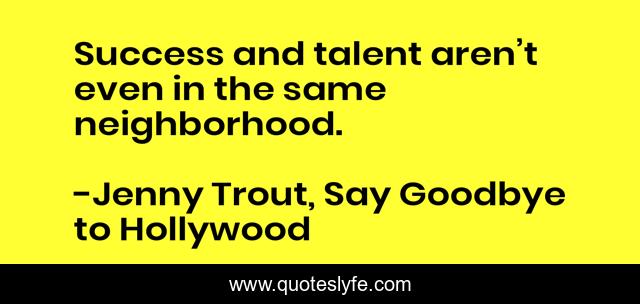 "Jenny Trout, Say Goodbye to Hollywood Quotes." Quoteslyfe.com, 2025. Fri. 05 Dec. 2025. <https://www.quoteslyfe.com/quote/Success-and-talent-aren-t-even-in-32785>.