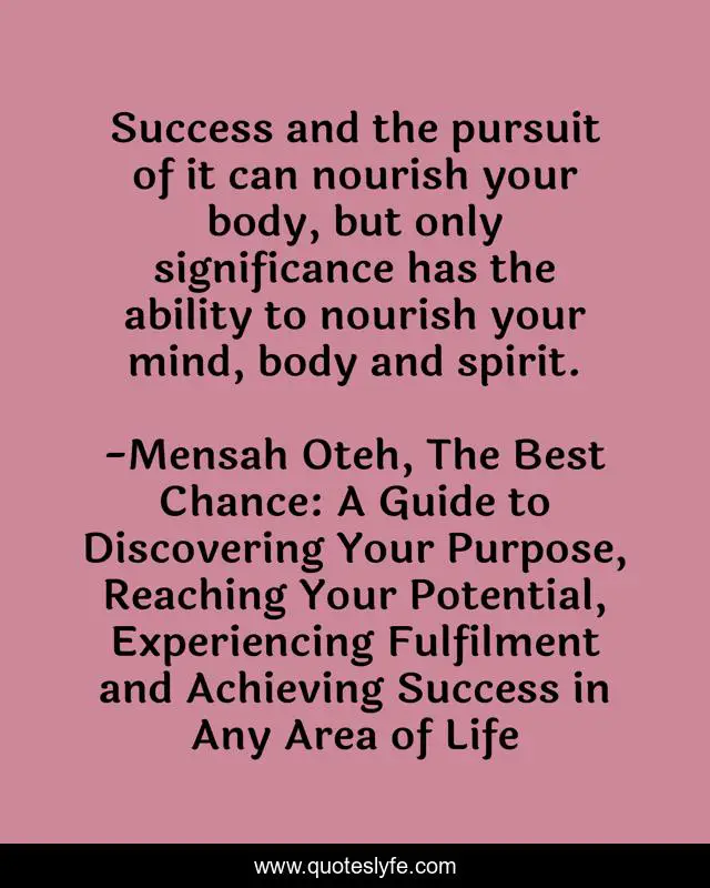 "Mensah Oteh, The Best Chance: A Guide to Discovering Your Purpose, Reaching Your Potential, Experiencing Fulfilment and Achieving Success in Any Area of Life Quotes." Quoteslyfe.com, 2025. Fri. 05 Dec. 2025. <https://www.quoteslyfe.com/quote/Success-and-the-pursuit-of-it-can-15711>.