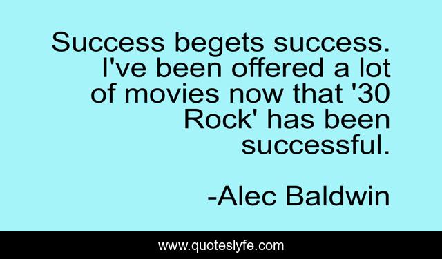 This page presents the quote "Success begets success. I've been offered a lot of movies now that '30 Rock' has been successful.". Author of this quote is Alec Baldwin. This quote is about successful, success, rock,.
