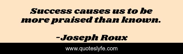 This page presents the quote "Success causes us to be more praised than known.". Author of this quote is Joseph Roux. .