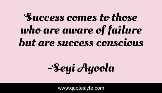 This page presents the quote "Success comes to those who are aware of failure but are success conscious". Author of this quote is Seyi Ayoola. This quote is about failure, awareness, consciousness, success,.
