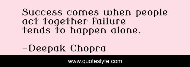 This page presents the quote "Success comes when people act together failure tends to happen alone.". Author of this quote is Deepak Chopra. This quote is about alone, success, together,.