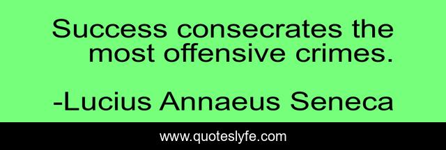 This page presents the quote "Success consecrates the most offensive crimes.". Author of this quote is Lucius Annaeus Seneca. This quote is about most, crimes, offensive,.