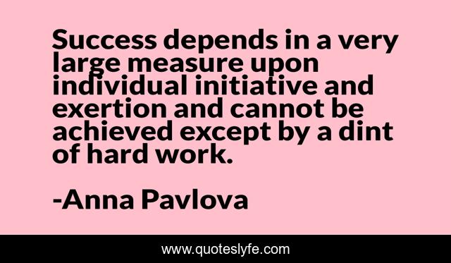 This page presents the quote "Success depends in a very large measure upon individual initiative and exertion and cannot be achieved except by a dint of hard work.". Author of this quote is Anna Pavlova. .