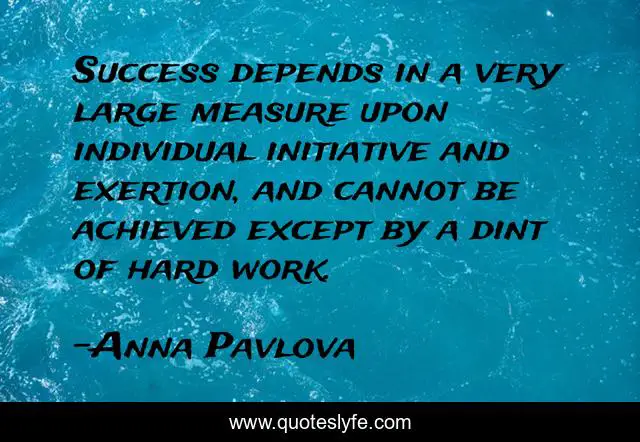 This page presents the quote "Success depends in a very large measure upon individual initiative and exertion, and cannot be achieved except by a dint of hard work.". Author of this quote is Anna Pavlova. This quote is about work, hard work, measure,.