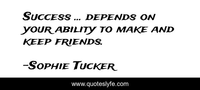 This page presents the quote "Success ... depends on your ability to make and keep friends.". Author of this quote is Sophie Tucker. .