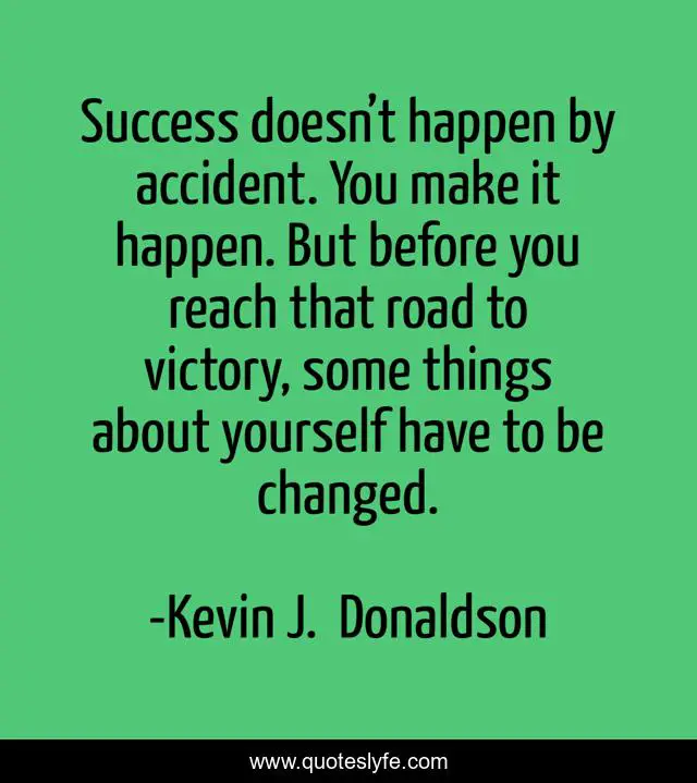This page presents the quote "Success doesn’t happen by accident. You make it happen. But before you reach that road to victory, some things about yourself have to be changed.". Author of this quote is Kevin J. Donaldson. This quote is about personal-transformation, success, self-help,.
