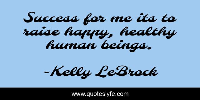 This page presents the quote "Success for me its to raise happy, healthy human beings.". Author of this quote is Kelly LeBrock. This quote is about me, success, happy,.