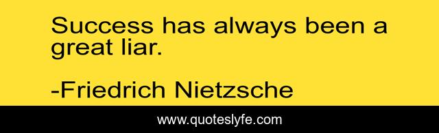 This page presents the quote "Success has always been a great liar.". Author of this quote is Friedrich Nietzsche. This quote is about always, liar, success,.