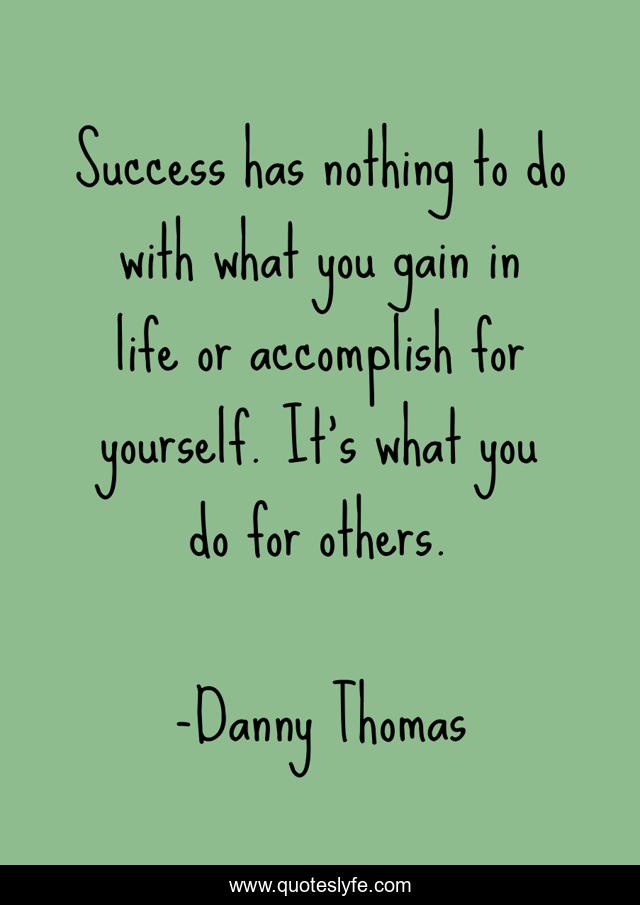 This page presents the quote "Success has nothing to do with what you gain in life or accomplish for yourself. It's what you do for others.". Author of this quote is Danny Thomas. This quote is about helping, people,.