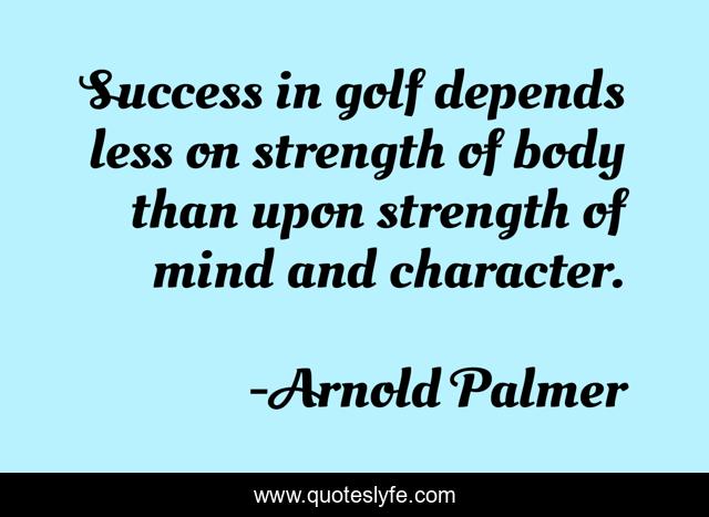 This page presents the quote "Success in golf depends less on strength of body than upon strength of mind and character.". Author of this quote is Arnold Palmer. This quote is about character, golf, success,.