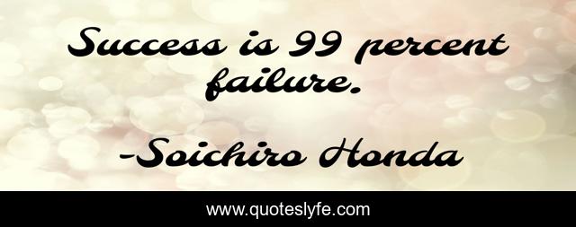 This page presents the quote "Success is 99 percent failure.". Author of this quote is Soichiro Honda. This quote is about success is, percent, success,.