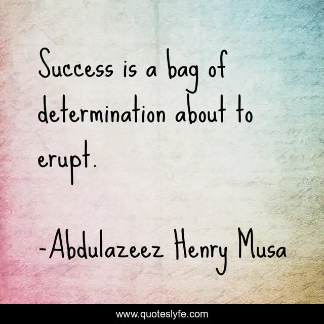 This page presents the quote "Success is a bag of determination about to erupt.". Author of this quote is Abdulazeez Henry Musa. .