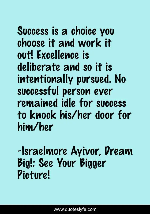 "Israelmore Ayivor, Dream Big!: See Your Bigger Picture! Quotes." Quoteslyfe.com, 2025. Sun. 07 Dec. 2025. <https://www.quoteslyfe.com/quote/Success-is-a-choice-you-choose-it-32324>.
