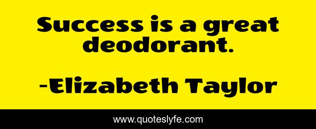 This page presents the quote "Success is a great deodorant.". Author of this quote is Elizabeth Taylor. This quote is about success is, great, deodorant,.