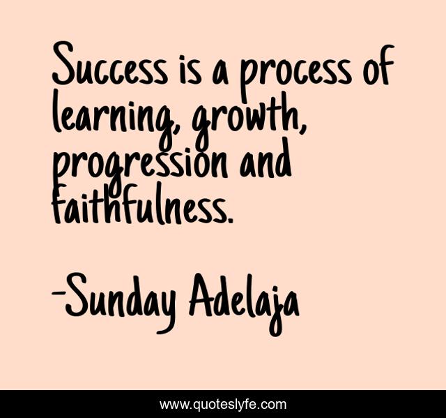 This page presents the quote "Success is a process of learning, growth, progression and faithfulness.". Author of this quote is Sunday Adelaja. This quote is about learning, growth, faithfulness, progression, success,.