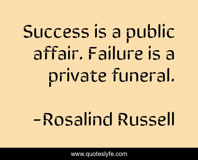 "Rosalind Russell Quotes." Quoteslyfe.com, 2025. Mon. 08 Dec. 2025. <https://www.quoteslyfe.com/quote/Success-is-a-public-affair-Failure-is-264392>.