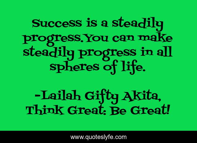 "Lailah Gifty Akita, Think Great: Be Great! Quotes." Quoteslyfe.com, 2025. Fri. 05 Dec. 2025. <https://www.quoteslyfe.com/quote/Success-is-a-steadily-progress-You-can-78481>.