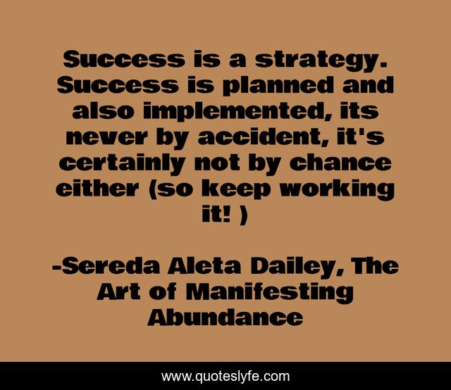 "Sereda Aleta Dailey, The Art of Manifesting Abundance Quotes." Quoteslyfe.com, 2025. Fri. 05 Dec. 2025. <https://www.quoteslyfe.com/quote/Success-is-a-strategy-Success-is-planned-214829>.