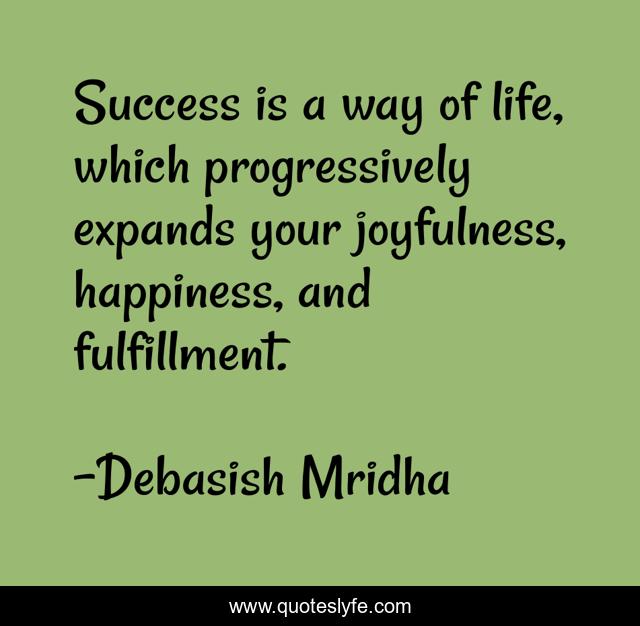 This page presents the quote "Success is a way of life, which progressively expands your joyfulness, happiness, and fulfillment.". Author of this quote is Debasish Mridha. This quote is about life, love, knowledge, inspirational, intelligence, philosophy, wisdom, quotes, affection,.