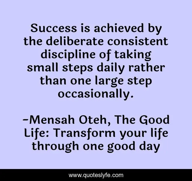 "Mensah Oteh, The Good Life: Transform your life through one good day Quotes." Quoteslyfe.com, 2025. Fri. 05 Dec. 2025. <https://www.quoteslyfe.com/quote/Success-is-achieved-by-the-deliberate-consistent-15910>.