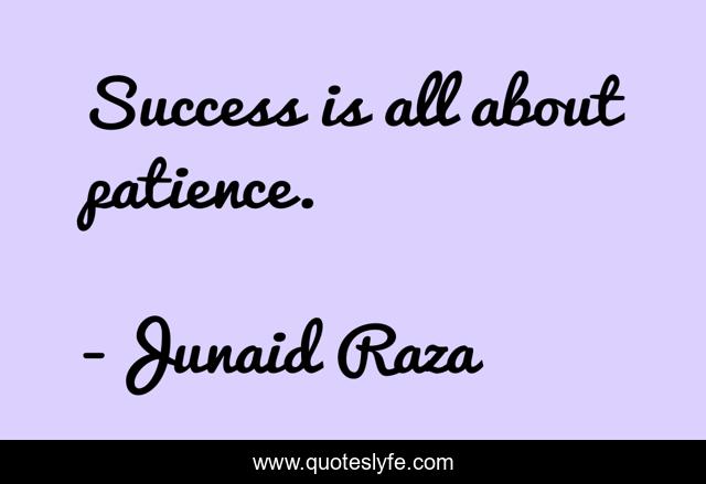 "Junaid Raza Quotes." Quoteslyfe.com, 2025. Sat. 06 Dec. 2025. <https://www.quoteslyfe.com/quote/Success-is-all-about-patience-193116>.