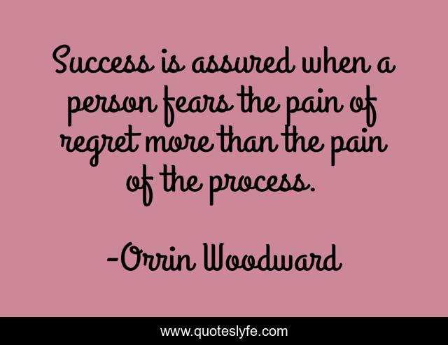 This page presents the quote "Success is assured when a person fears the pain of regret more than the pain of the process.". Author of this quote is Orrin Woodward. This quote is about achievement, success,.