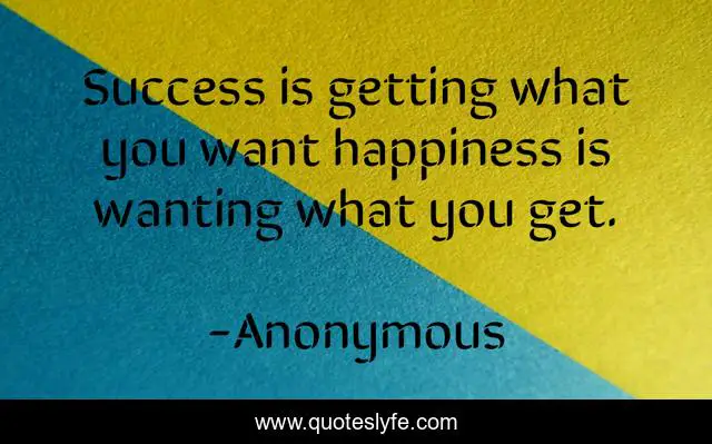 This page presents the quote "Success is getting what you want happiness is wanting what you get.". Author of this quote is Anonymous. .