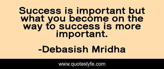 This page presents the quote "Success is important but what you become on the way to success is more important.". Author of this quote is Debasish Mridha. This quote is about life, love, knowledge, inspirational, intelligence, philosophy, wisdom, quotes, affection,.