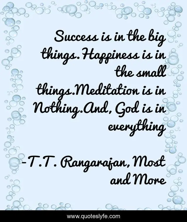 Success is in the big things.Happiness is in the small things.Meditation is in Nothing.And, God is in everything
