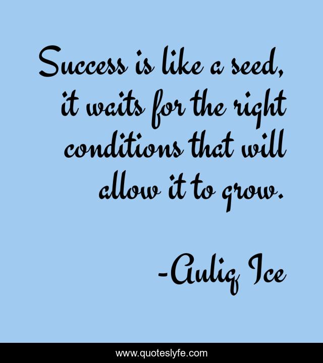 This page presents the quote "Success is like a seed, it waits for the right conditions that will allow it to grow.". Author of this quote is Auliq Ice. .