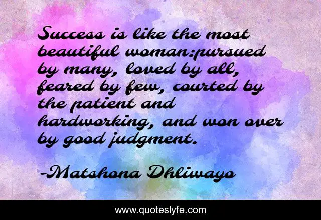 "Matshona Dhliwayo Quotes." Quoteslyfe.com, 2025. Tue. 09 Dec. 2025. <https://www.quoteslyfe.com/quote/Success-is-like-the-most-beautiful-woman-109181>.