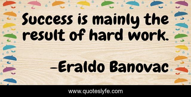 This page presents the quote "Success is mainly the result of hard work.". Author of this quote is Eraldo Banovac. This quote is about living, life, philosophy, success, hardworking, results, organizational-behavior, sociology, result,.