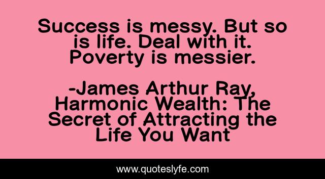 This page presents the quote "Success is messy. But so is life. Deal with it. Poverty is messier.". Author of this quote is James Arthur Ray, Harmonic Wealth: The Secret of Attracting the Life You Want. .