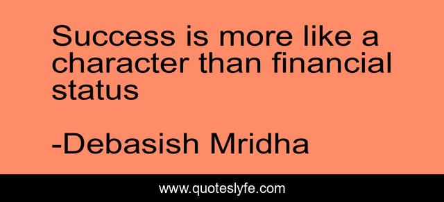 This page presents the quote "Success is more like a character than financial status". Author of this quote is Debasish Mridha. This quote is about financial-status, miraboli, success, oscar-wilde, character, philosophy, debasish-mridha, tagore, quotes,.