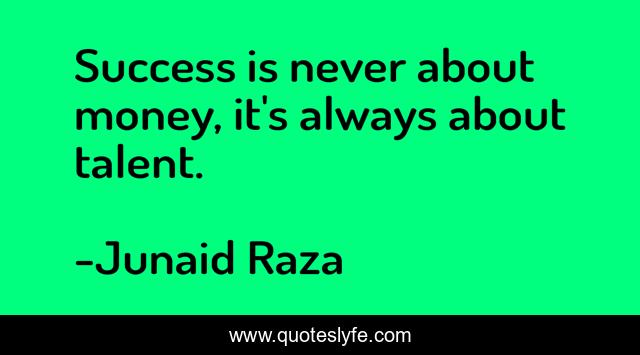 This page presents the quote "Success is never about money, it's always about talent.". Author of this quote is Junaid Raza. This quote is about talent, success,.