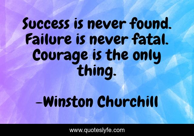 This page presents the quote "Success is never found. Failure is never fatal. Courage is the only thing.". Author of this quote is Winston Churchill. .