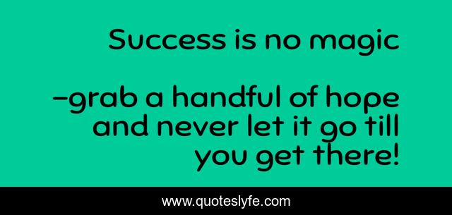 "grab a handful of hope and never let it go till you get there! Quotes." Quoteslyfe.com, 2025. Fri. 05 Dec. 2025. <https://www.quoteslyfe.com/quote/Success-is-no-magic-129630>.