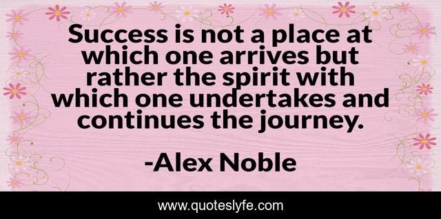 This page presents the quote "Success is not a place at which one arrives but rather the spirit with which one undertakes and continues the journey.". Author of this quote is Alex Noble. This quote is about journey, place, spirit,.