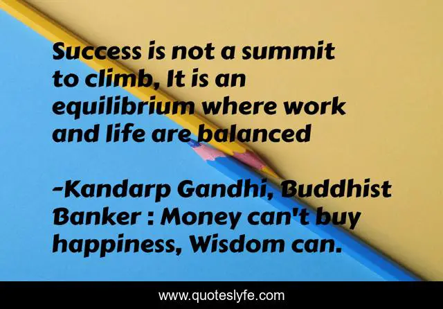 This page presents the quote "Success is not a summit to climb, It is an equilibrium where work and life are balanced". Author of this quote is Kandarp Gandhi, Buddhist Banker : Money can't buy happiness, Wisdom can.. This quote is about confidence, positive, motivational, optimistic, inspirational, professional, personal-development, enthusiasm, happiness,.