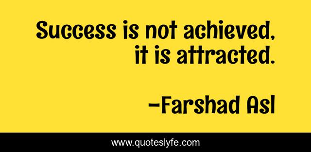 This page presents the quote "Success is not achieved, it is attracted.". Author of this quote is Farshad Asl. .